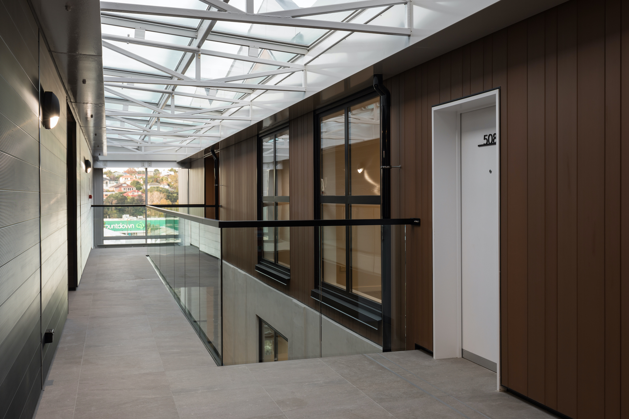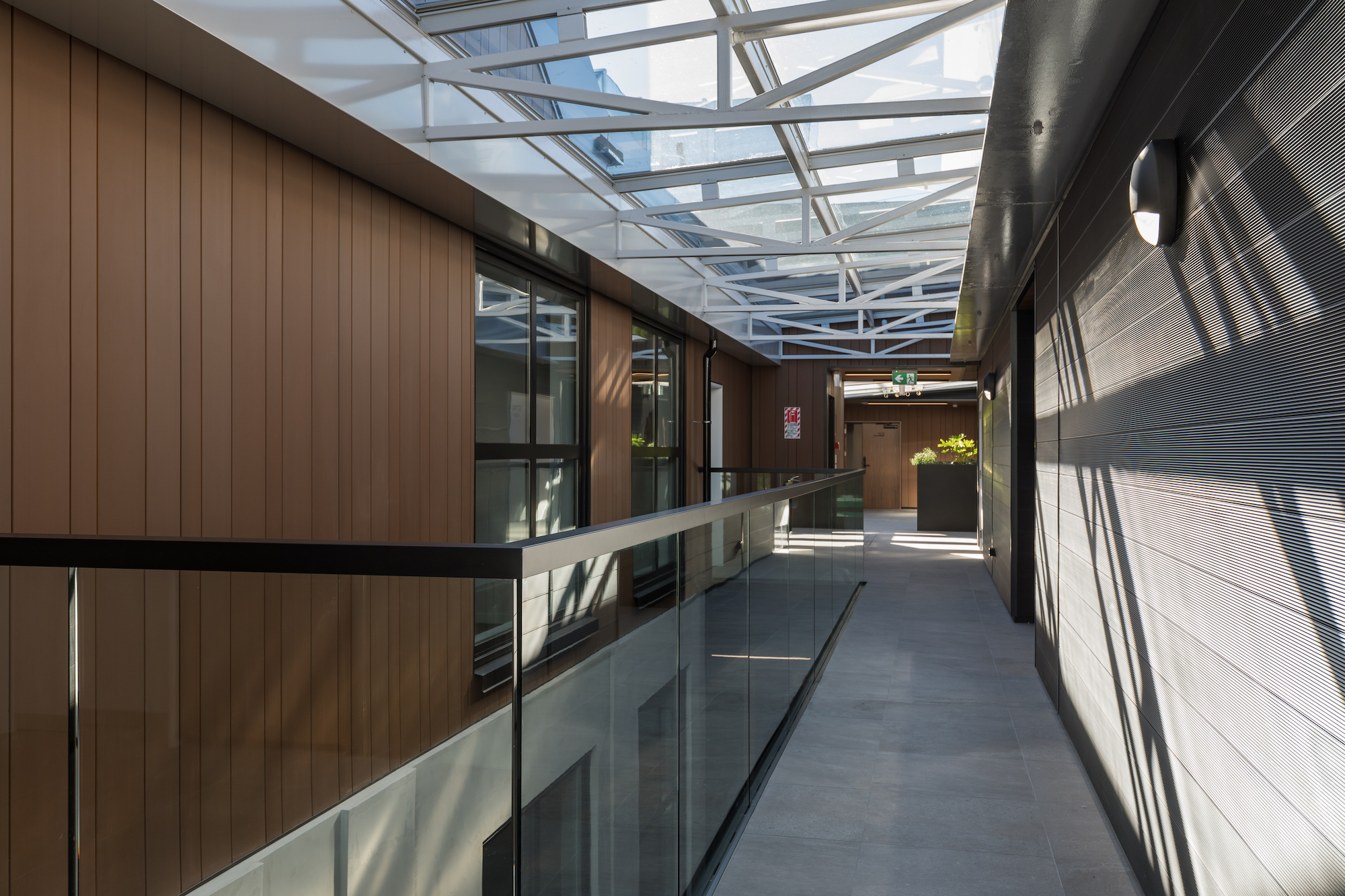 The architecturally-designed Victor apartments has a strong focus on quality, design and sophisticated modern living. The aim of the architects and designers were to create an iconic theme that gives a new voice to its multi-faceted gateway site. By using INNOCLAD and INNOCEIL architects were able to successfully match natural palettes of wood colour and textures to fit the natural theme and the lighting of the building. Natural timber look of the ceilings/soffits has enhanced the interior and the exterior of the building, including balconies and internal corridors.